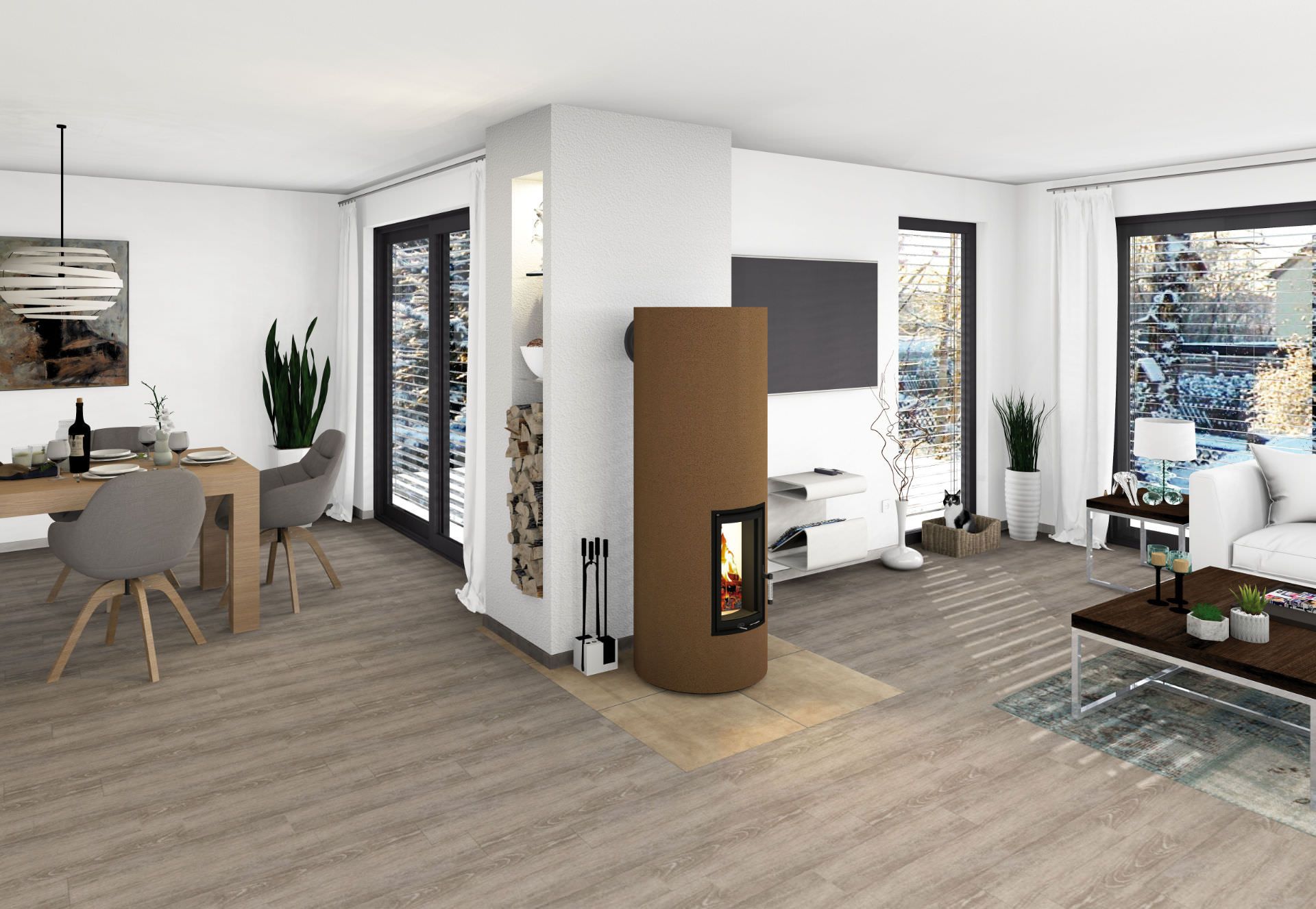 Der Rondo Mini ist mit einer Höhe von 1.650 mm etwas niedriger als der Rondo Maxi, aber ansonsten ebenso ein richtiger Grundofen: Kompletter Feuerraum (in zwei verschiedenen Höhen) aus einer Doppehülle ausBRULA® Wärmespeicherplatten, elegante 460 mm hohe Grundofen-Radiusheiztüre in Schwarz, höhenverstellbarer Sockel, VL-Anschluss (Ø 150 mm), mit VL-Schieber und BRULA® Aufbaumörtel. Ein eleganter Blickfang auf kleinster Grundfläche. Und durch seine schlanke Form ist er für jedes Zimmer ein Hingucker.