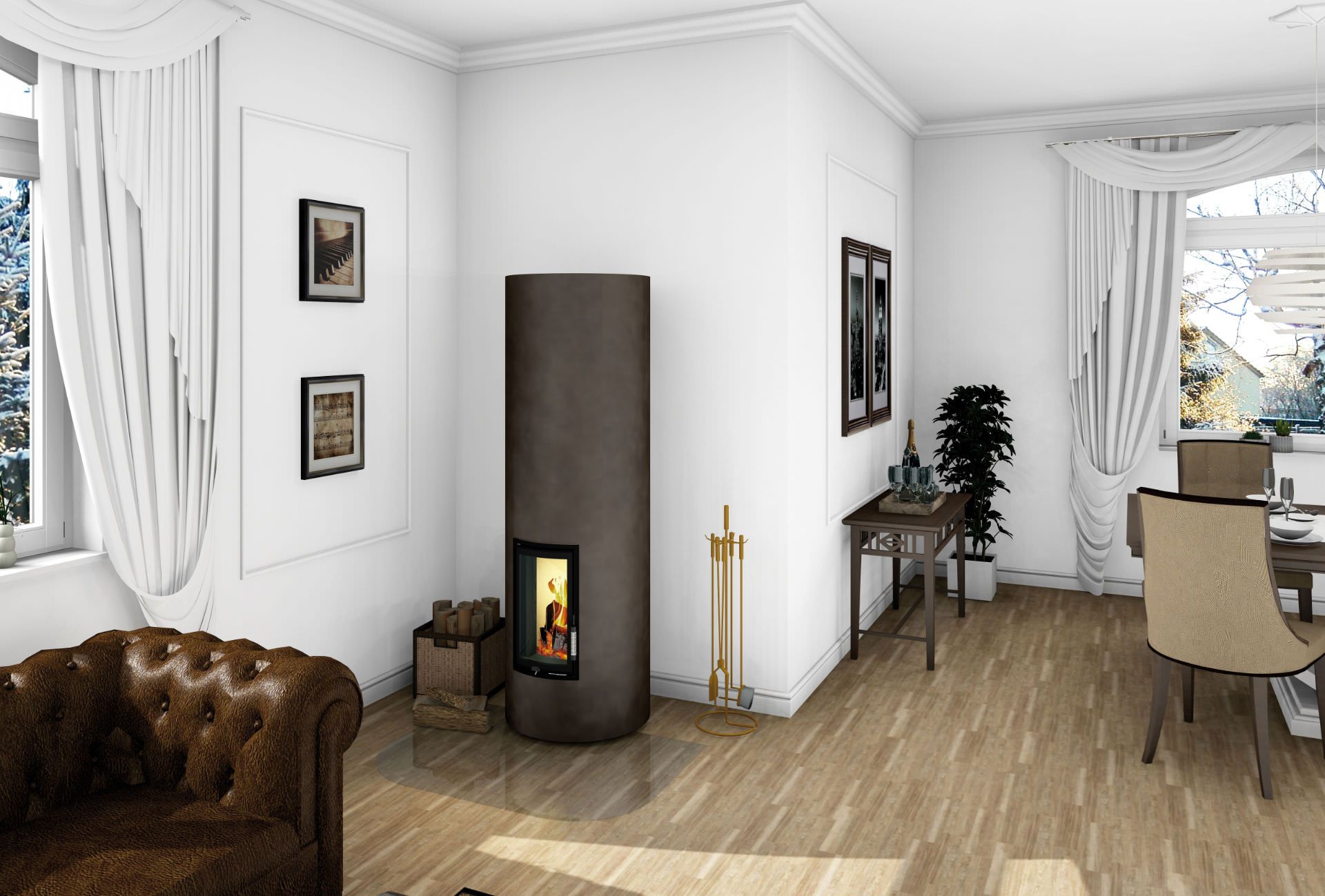 Der Rondo bietet alles, was einen richtigen Grundofen ausmacht: Kompletter Feuerraum (in zwei verschiedenen Höhen) aus einer Doppelhülle aus BRULA® Wärmespeicherplatten, elegante 460 mm hohe Grundofen-Radiusheiztüre in Schwarz, höhenverstellbarer Sockel, VL-Anschluss (Ø 150 mm), mit VL-Schieber und BRULA® Aufbaumörtel. Ein eleganter Blickfang auf kleinster Grundfläche. Und durch seine schlanke Form ist er für jedes Zimmer ein Hingucker.
