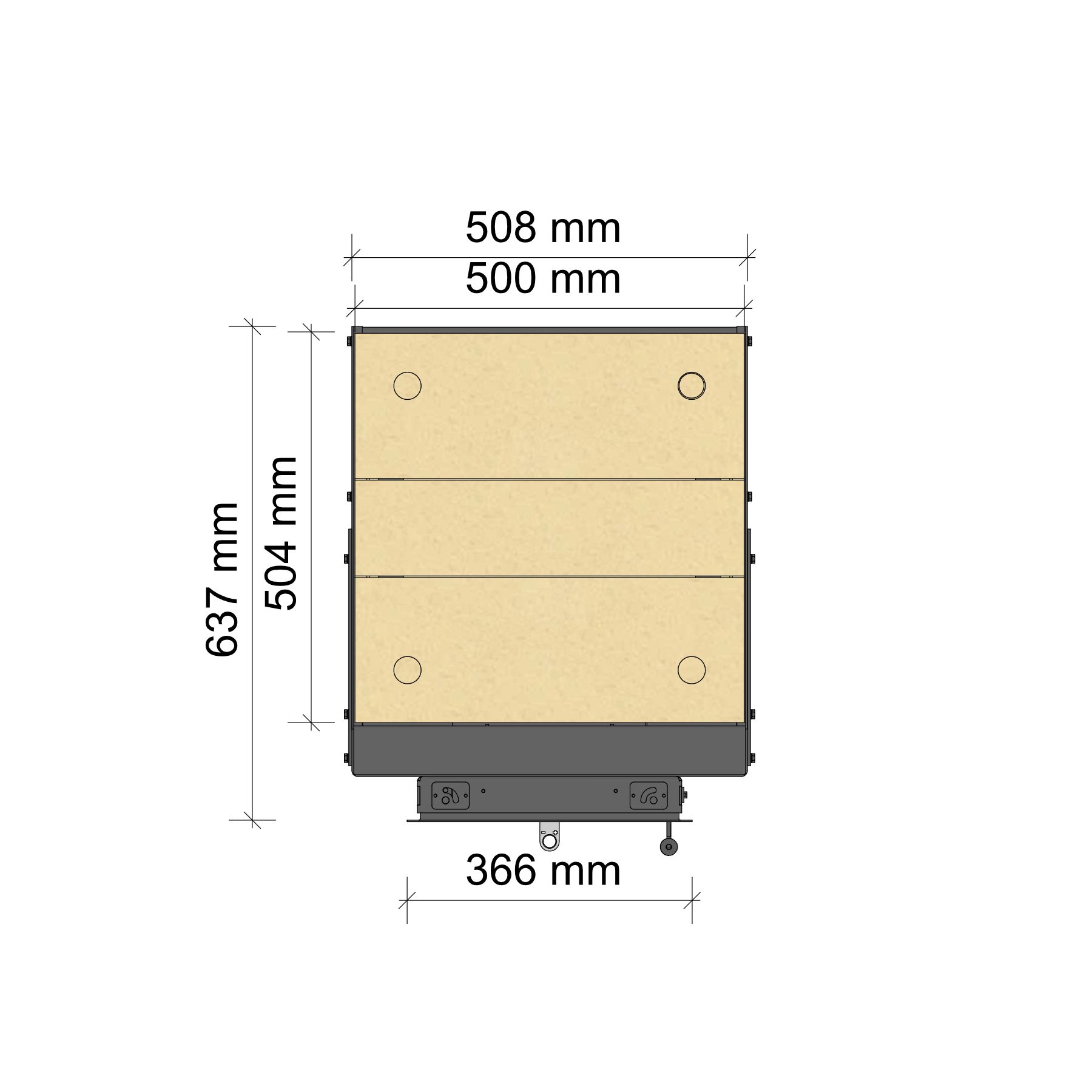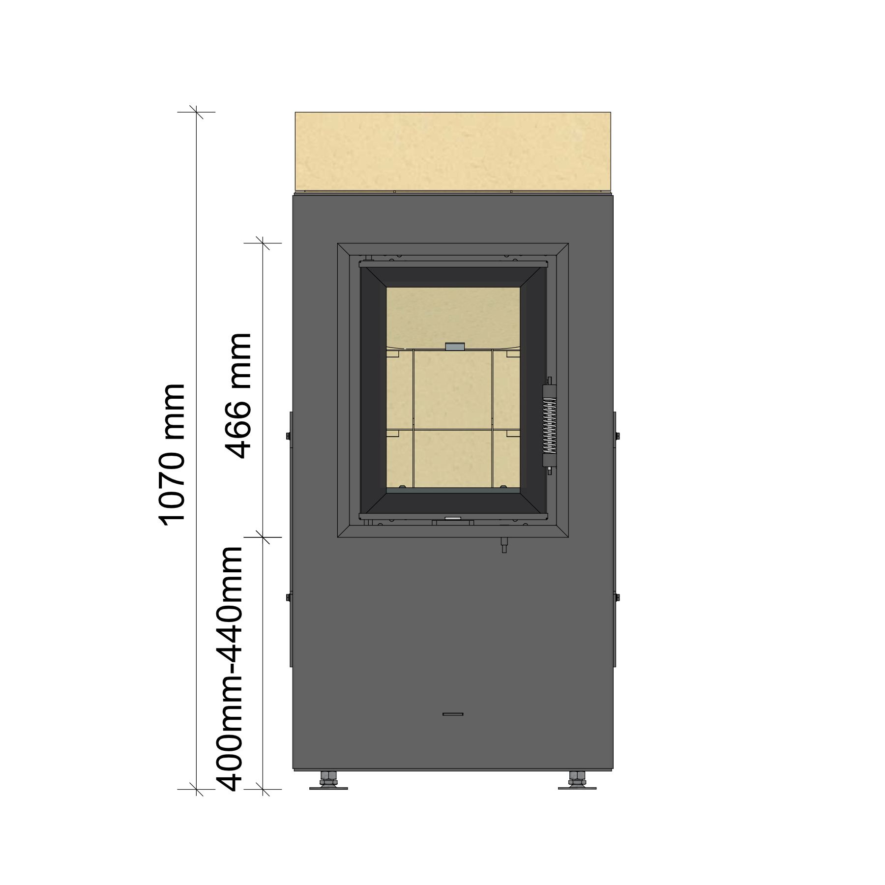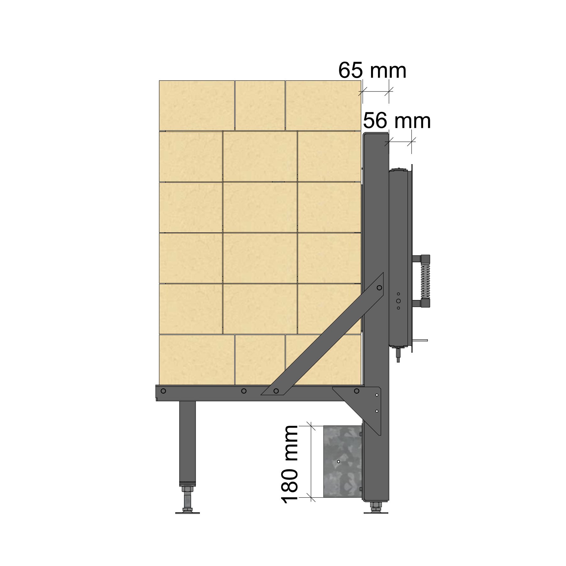 Der Feuerraum ist mit der Grundofentür GT-A 04 lieferbar. Nach DIN EN 15250, 15a BVG, 2. Stufe BImSchV geprüft.