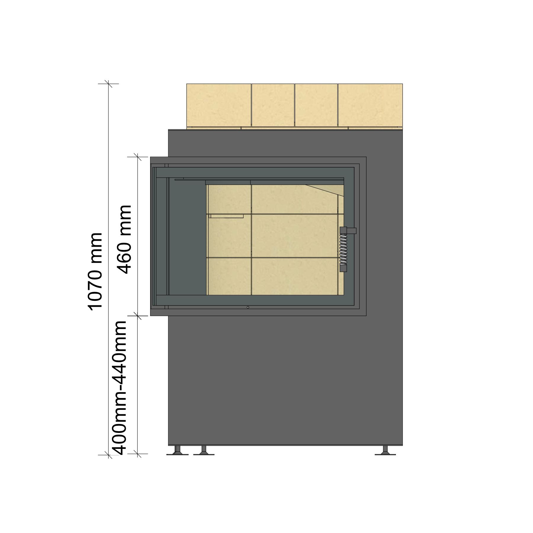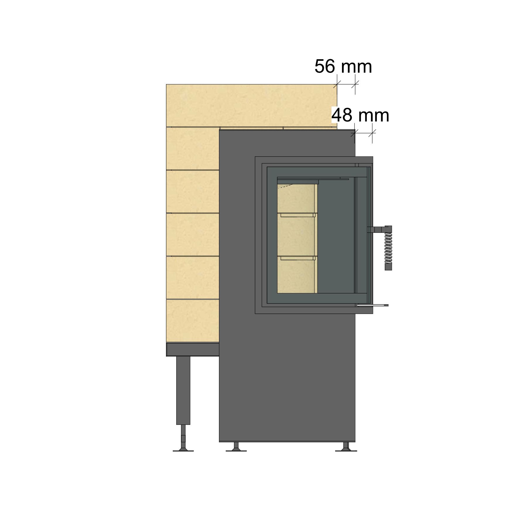 Auch für kompakte Raumsituationen stellen wir mit dem Komplett-Feuerraum Ecke und der Grundofentür GT-Air 90° einen einfach zu installierenden echten Eck-Feuerraum zur Verfügung.